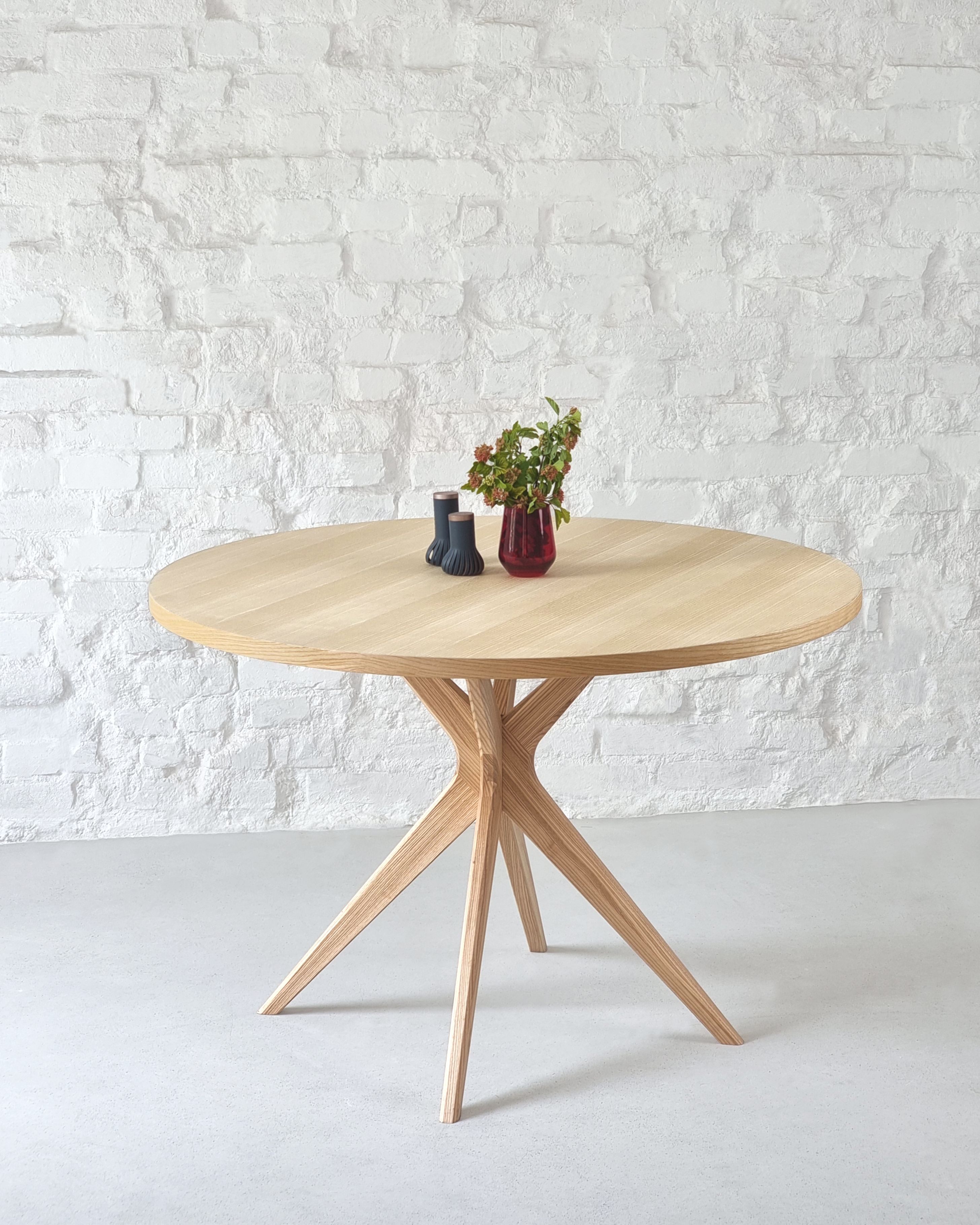 Wszystkie stoły jadalniane Jubi są dostępne z blatem z laminowanej i lakierowanej płyty MDF, dostępnej w wielu kolorach, lub z blatem z naturalnego forniru jesionowego. Nogi stołów wykonane są z naturalnego drewna jesionowego, co zapewnia stabilność i trwałość konstrukcji. Nogi posiadają również regulowane stopki, co pozwala dostosować stół do każdej powierzchni. Od małego okrągłego stołu jadalnianego 90 cm po kompaktowy prostokątny stół, kolekcja Jubi oferuje rozwiązania dla każdej przestrzeni i stylu. Niezależnie od tego, czy urządzasz małą kuchnię, przytulny kącik jadalny, czy wielofunkcyjny salon, znajdziesz element, który będzie pasował do Twojej przestrzeni.