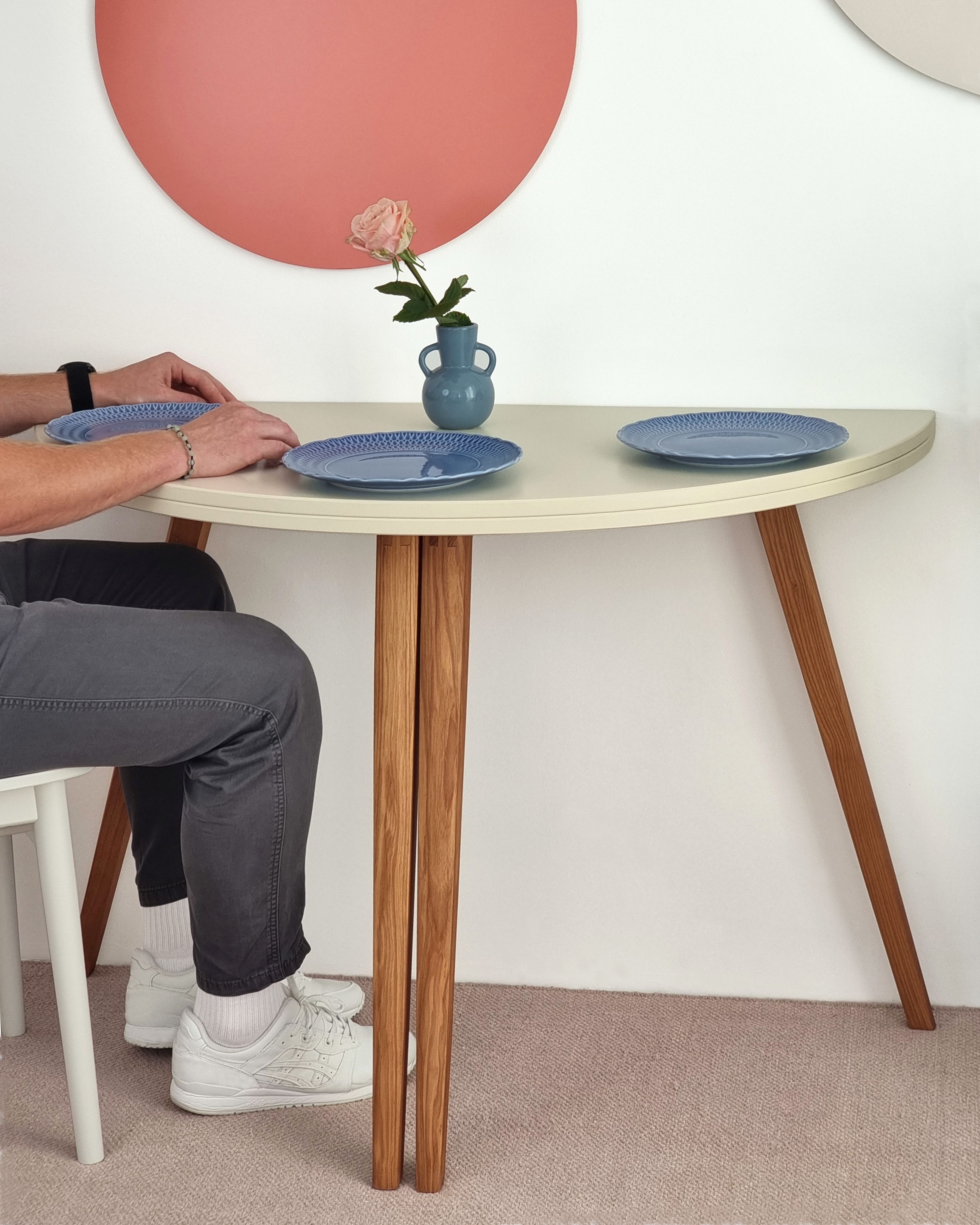Przedstawiamy półksiężycowy rozkładany stół jadalniany Mawi – inteligentne rozwiązanie oszczędzające miejsce