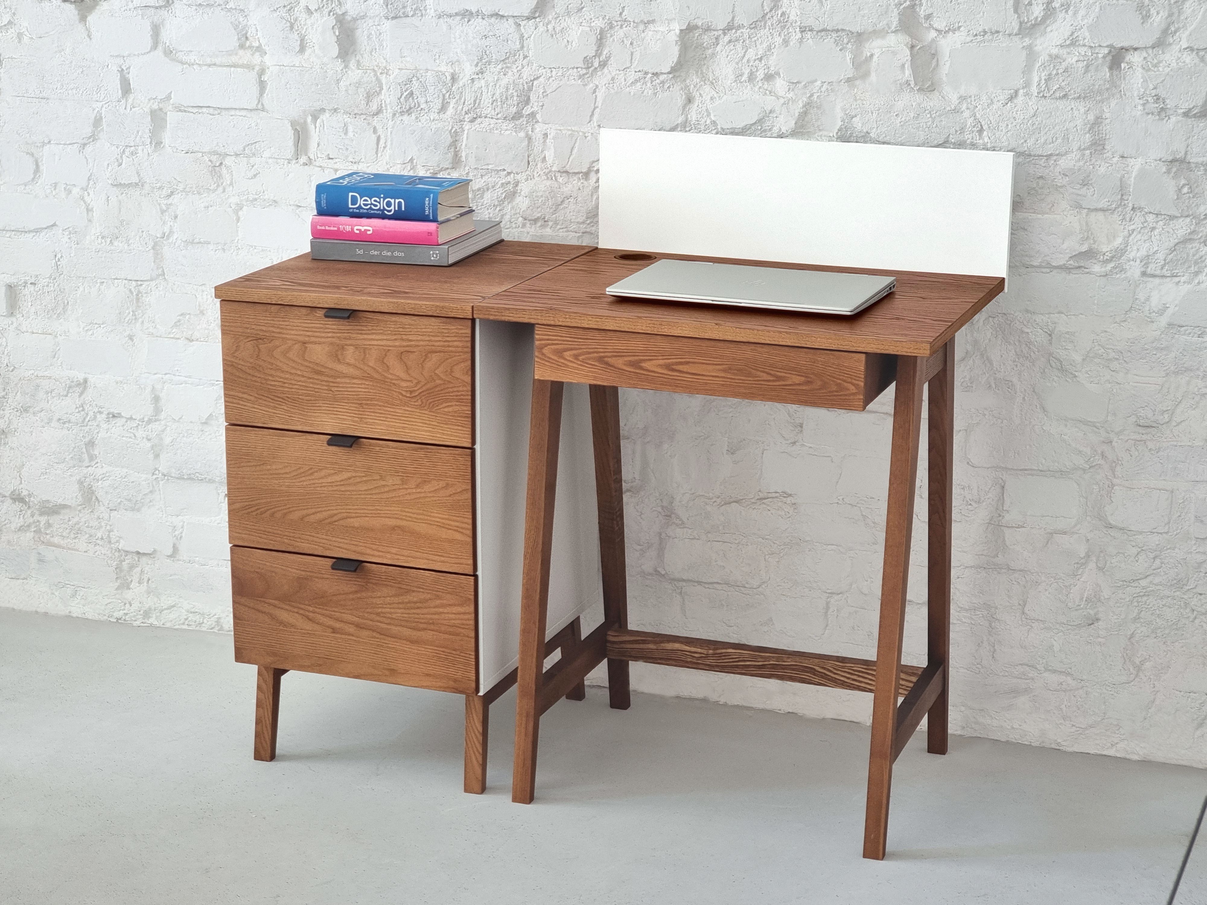 Szukając małego biurka sprawdź naszą kolekcję biurek z szufladą zaprojektowaną z myślą o funkcjonalności i unikalnym designie. Małe biurko z szufladą jest dostępne w trzech szerokościach – 65cm, 85cm i 105cm – oraz trzech stylach nóg – Mimo, Lillo, i Mamo.
