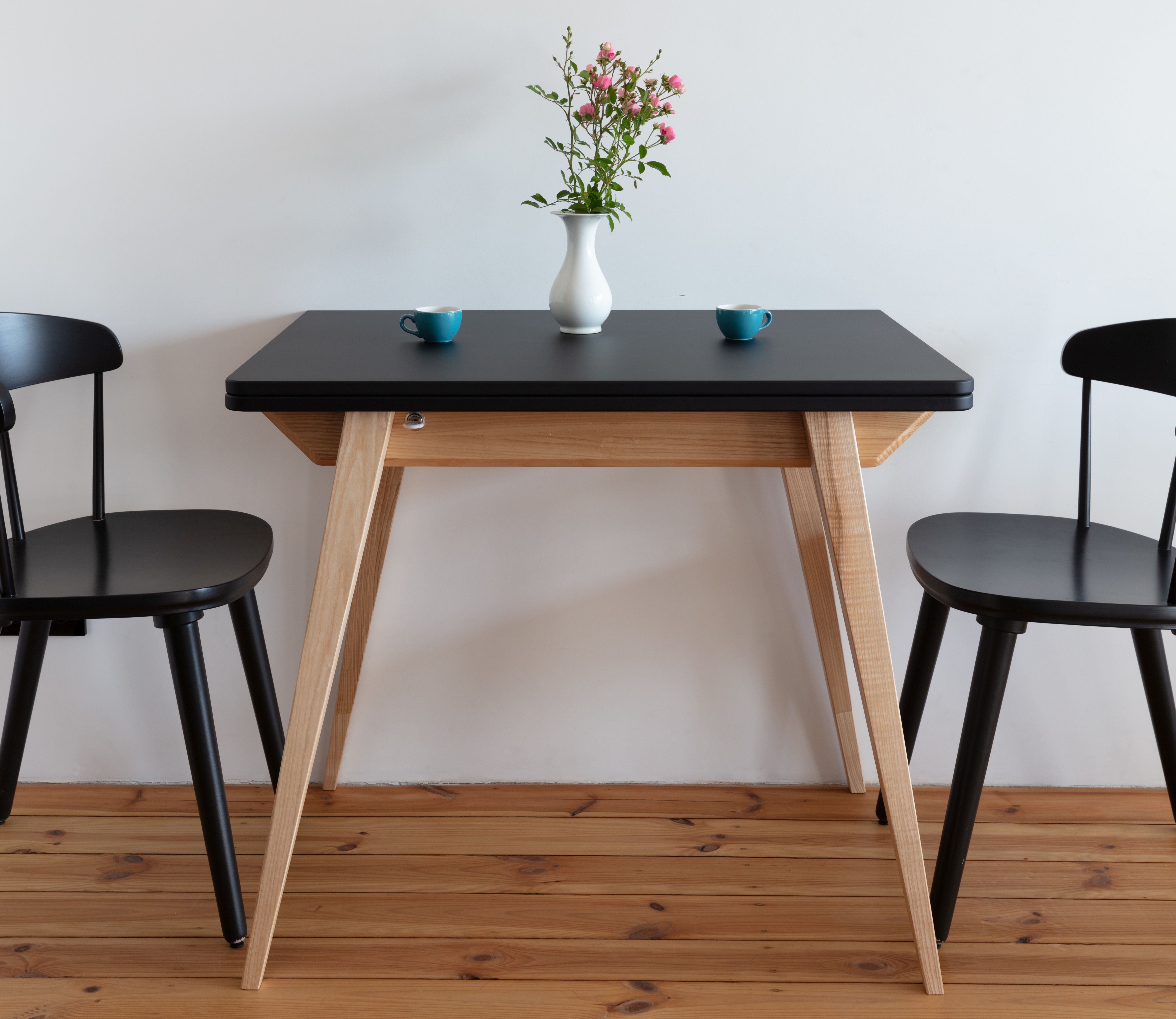 - Czarny – Rozkładany stół Envelope to funkcjonalny mebel, który po całkowitym rozłożeniu pomieści 6 osób. W połączeniu z czarnym blatem, doda elegancji i uzupełni styl wnętrza.