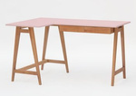 Jesionowe Biurko Narożne LUKA 135cm x 85cm / Różowe LEWE