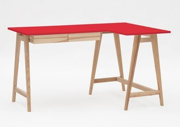 Jesionowe Biurko Narożne LUKA 135cm x 85cm / Czerwone LEWE